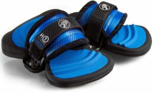 The Hydra is a one strap asymmetrical body shape which provides a positive fit for the rider looking for board control with ease of use. The Hydra is supportive yet lightweight and flexible. It can be used for all types of twin tip riding from freestyle to freeriding. The Hydra attaches to the board with minimal effort. It sits on a super cushy footpad with arch support, toe grips, and generous heel coverage.