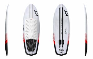 The boards have a completely flat rocker where the foil is attached. The foil is 90 degrees to the board and when paddling. When foiling it creates neutral lift.
