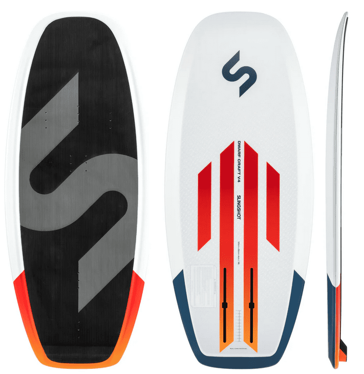 The Dwarf Craft V4 is built with the philosophy of high surface area and low volume being a priority, creating a board that stays on its side in the water rather than laying flat. This makes foot placement easier and keeps the nose pointed in the right direction until you’re ready to dive the kite and take off. Pairing this design with an ultra-durable PMU top sheet, compression molded for maximum strength and a progressive rocker, the V4 delivers a direct, responsive connection to your foil.