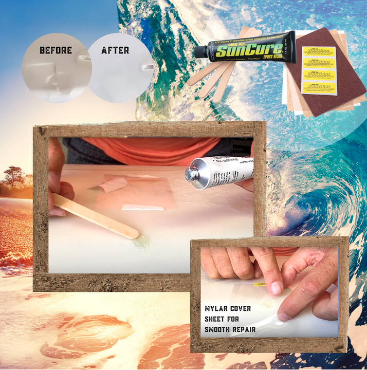 A faster method for repairing all types of surfboards, especially epoxy. Sun Cure® Fiberfill Epoxy is used straight from the tube, no mixing or adding cloth needed. Our proven formula is very clear and provides a permanent repair.