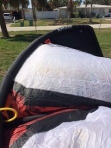 GREAT USED KITE AT A GREAT PRICE AND GREAT CONDITION! There are some pictured cosmetic marks and scuffs on the canopy of the kite.