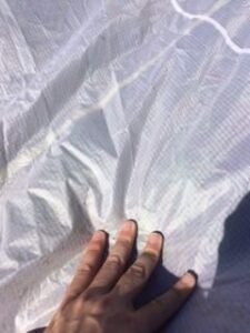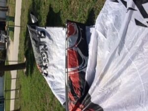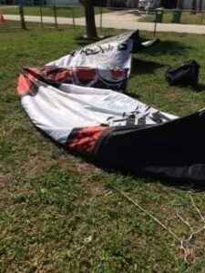 This kite was used in our kite school and is in good shape. This kite does not come with the bar and lines and is listed as kite only.