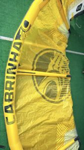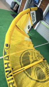 Kite material is in good shape. No visible issues. All new valves installed and tested to confirm it holds air. Great way to get into a smaller kite that will last a long time!