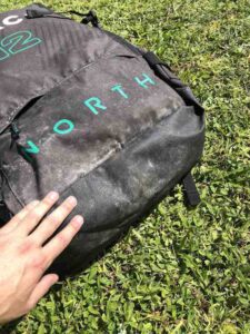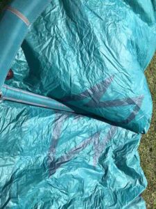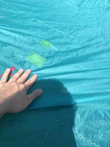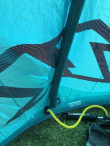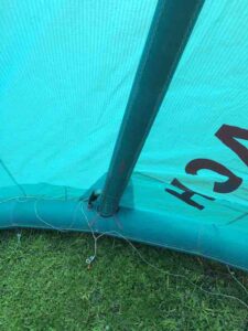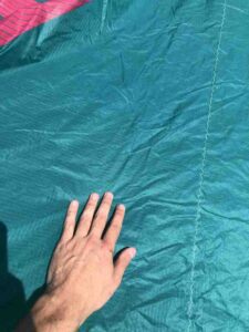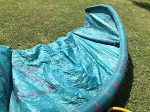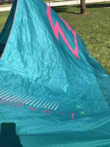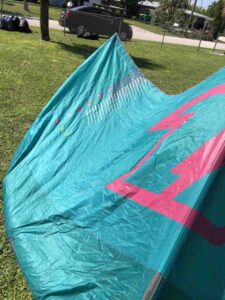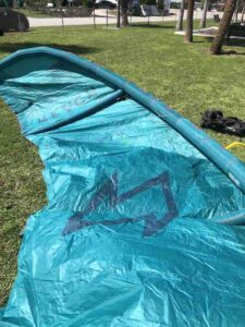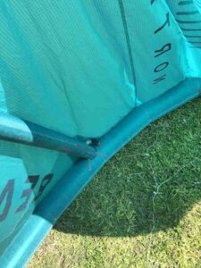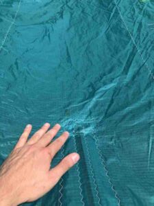 Kite holds air well. You can tell by the photos that this kite is still very crispy. This was used in our school and still has a lot of use left in it! Has a professionally sewn canopy repair (pictured).