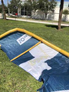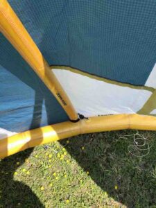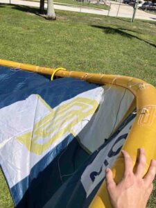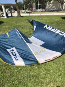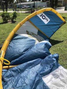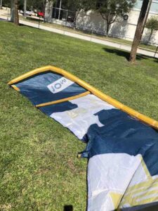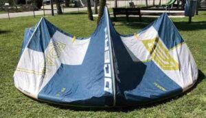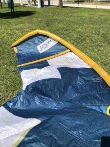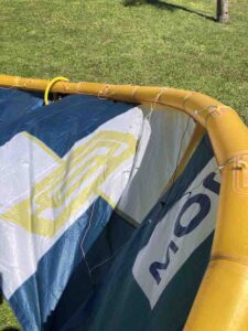 This kite previously had a slow leak in the leading edge but has since been professionally repaired and tested. This was used in our school and still has a lot of life left in it!