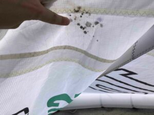 Used in our school. Still in great shape. Material is still very crisp. Holds air and still has a lot of use left in her. Has some minor cosmetic scuffs which are pictured with hand for scale.