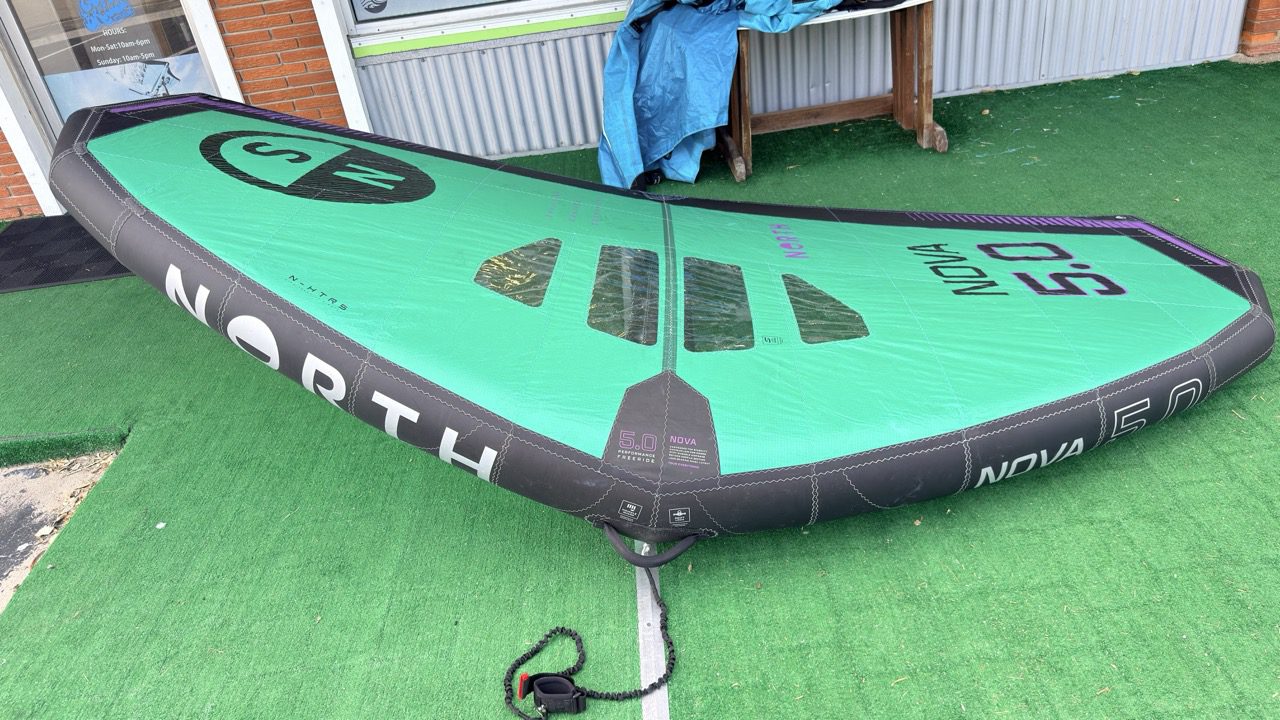 This wing is in great condition. No real signs of use. Pretty much new! Includes hard handles, wrist leash and bag.